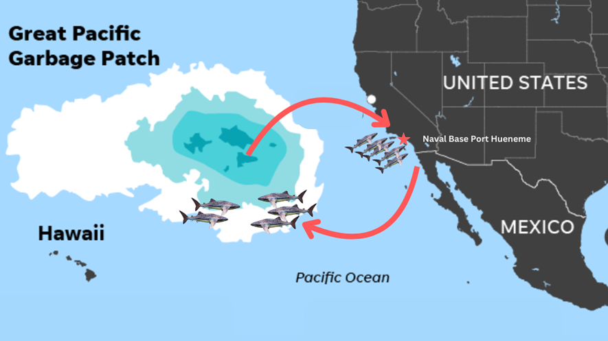 Figure 5. Diagram of travel route. Background image from The Ocean Cleanup (n.d.).